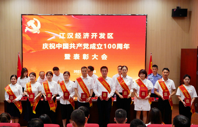 正值中國共產(chǎn)黨建黨100周年之際,江漢經(jīng)濟開發(fā)區(qū)在2021年6月30日上午,隆重舉辦了慶祝建黨100周年暨“兩優(yōu)一先”評選表彰大會,會議在園區(qū)咸亨賽孚實業(yè)有限公司會議室召開。公司黨支部書記、副總經(jīng)理金巍,公司支部副書記、董事長助理劉宗寶應(yīng)邀參會。