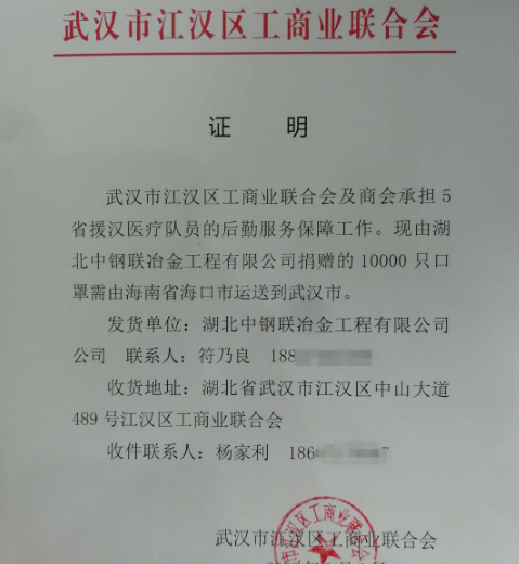 公司本部坐落在武漢市江漢區,武漢疫情的發展時刻牽動著各級領導的心;由于春節假期,員工多數離漢在家自覺封閉管理,遠在中國最南端的海南省符乃良總經理得知公司所在區里抗“疫”緊缺物資口罩的時候,毫不猶豫在海南四處打聽,聯系各界朋友,緊急籌集到10000只口罩,由省會海口直接運抵武漢,緩解了“5省援漢醫療隊”后勤服務保障之急。