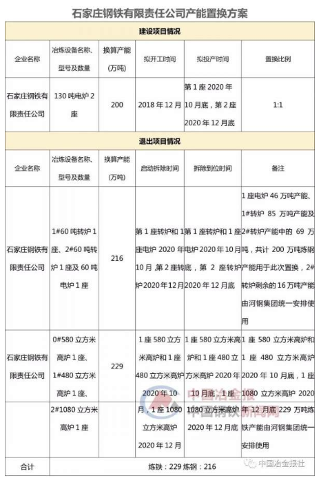 2018年10月30日,河北省工信廳發(fā)布了《河鋼集團(tuán)石家莊鋼鐵有限責(zé)任公司建設(shè)項目產(chǎn)能置換方案公示》,提出河鋼石鋼將于2018年12月在石家莊市井陘礦區(qū)開工建設(shè)新項目。在搬遷設(shè)計上,河鋼石鋼將在井陘礦區(qū)新建兩座130噸電爐,換算產(chǎn)能為200萬噸。